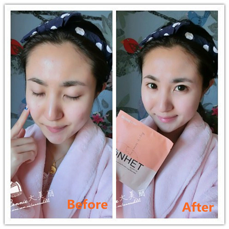 给大家看看我的使用前后效果,用之前肤色不是太均匀,痘印比较明显。我用过后的效果,肌肤有变得更白净,痘印也有淡化哦。