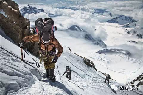 09年我曾攀登过一次雀儿山,但那次天气不好,向导又将我们误带入冰裂缝区,只能下撤。这次攀登准备充分,我还背上了三角架等照相器材。