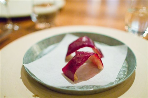 脆皮猪肉皮和黑加仑。(感觉像苹果皮有没有)