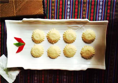 这是西藏风味浓厚的酥油糕点,是现在北京风味糕点的前身。主要是用面粉、白糖以及其他一些配料制作而成的,口味可根据个人喜好来配。