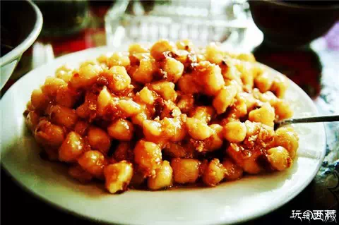 这个名字听起来有点奇怪,像是人名,但其实它是一种面食。和好面后,弄成一个个小疙瘩的形状,放水中煮熟。起锅后,再放进锅里炒,加入酥油、白糖、鲜奶渣,翻炒均匀后就可以食用了。