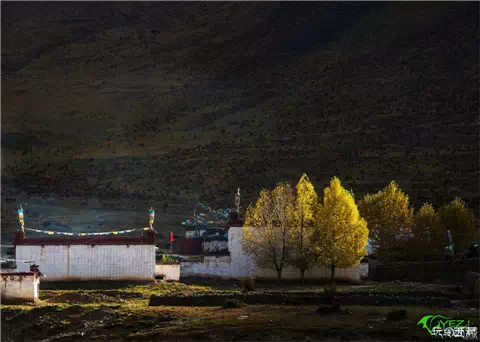 红檐白墙的藏寨星散于远远的坡地,身旁被缤纷的秋树簇拥着,几乎看不到人影。