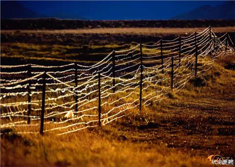 黄昏里,公路旁的栅栏泛着迷离的光影。