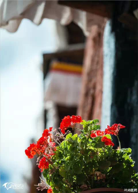 清晨的扎什伦布寺,转角遇到爱。窗台上有随处可见的盆栽花朵。