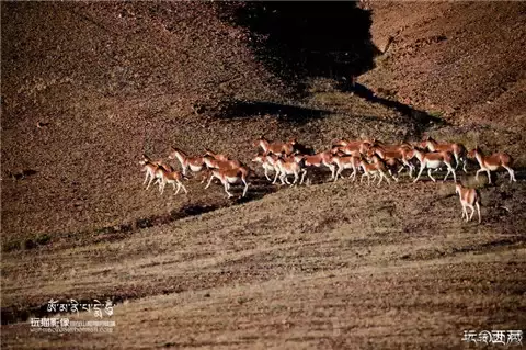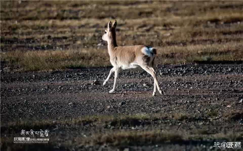 偶然间也有藏原羊不停在的路边打量我们,这不,这一小只藏原羊显然是没睡好。傻愣愣的站在路中瞧我们,片刻才反应过来狂奔而逃。