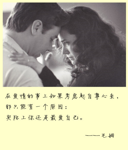 在爱情的事上如果考虑起自尊心来,那只能有一个原因:实际上你还是最爱自己。——毛姆
