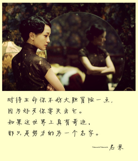 对待生命你不妨大胆冒险一点,因为好歹你要失去它。如果这世界上真有奇迹,那只是努力的另一个名字。——尼采