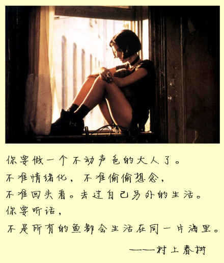 你要做一个不动声色的大人了。不准情绪化,不准偷偷想念,不准回头看。去过自己另外的生活。你要听话,不是所有的鱼都会生活在同一片海里。——