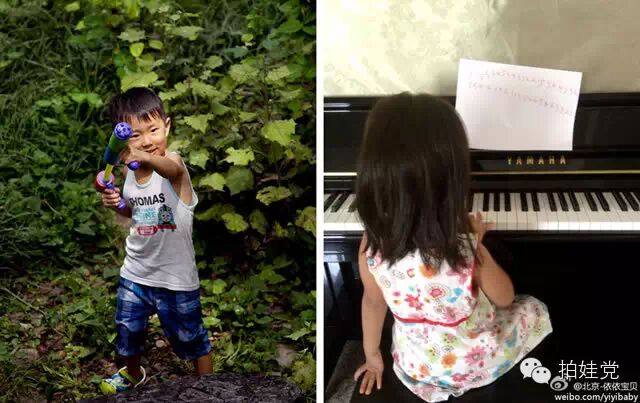 忽然看到依依对着一张纸弹琴,原来是她自己写的"简谱"