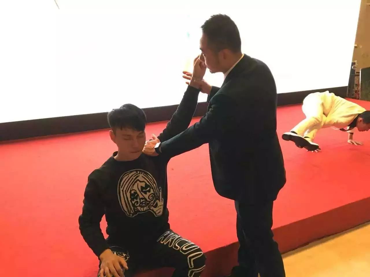 大会期间的插曲,西安婵静瑜伽团队表演者熊老师意外受伤,手臂肩关节屈曲外展受限并疼痛,在前外科医生郭剑锋老师检查确定没有存在骨损伤的前提下,吴振巍院长做了评估,判断上斜方肌损伤,立刻做了功能激活,当场肩颈疼痛消失八成,手臂当即可以过头!脊柱功能训练,从来就不缺客户,缺的是真正懂得深度整合训练的教练!