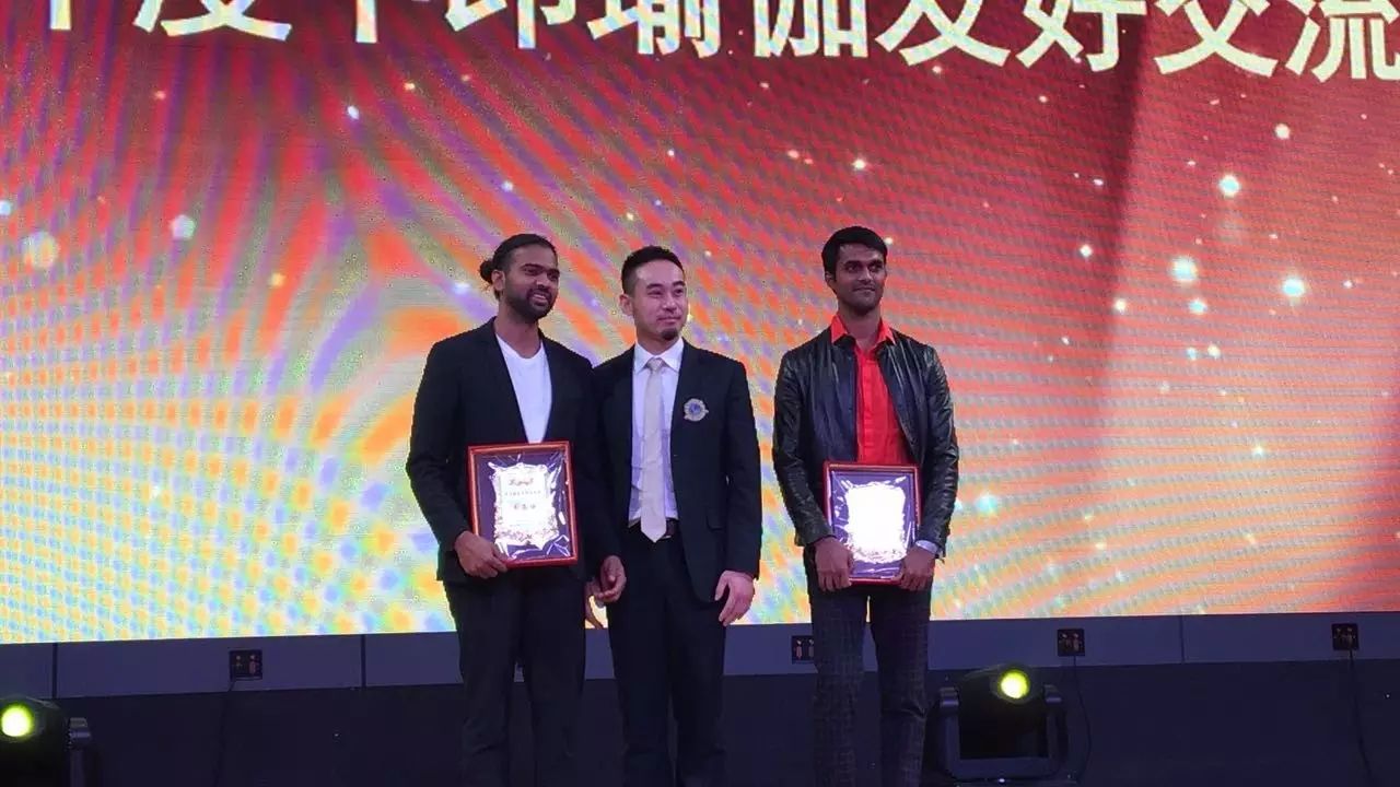 昨天晚间的瑜伽盛典颁奖典礼上,吴振巍院长亲自给2015年度中印瑜伽交流带来杰出贡献的印度知名瑜伽师荷马士和希瓦老师颁奖,这是本次的压轴大奖!!!