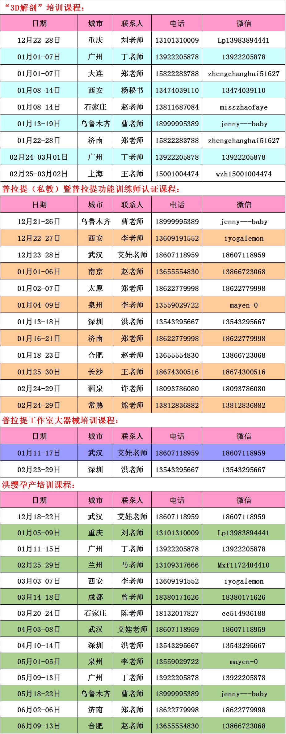 因年底左右全体老师有内训,所以课程有所变动,请关注以下左右普拉提培训机构最新的课程表。