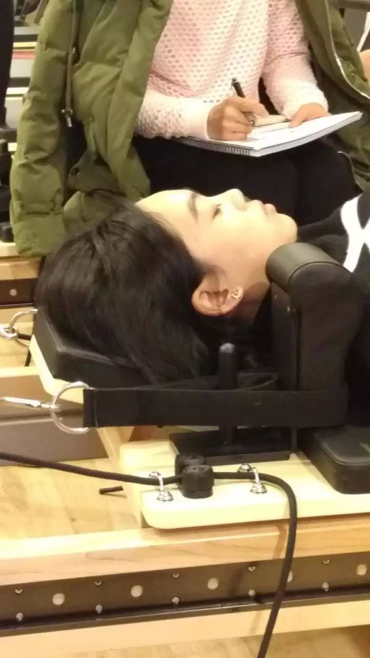王子老师正在向学员讲解上滑动床后头部的正确摆放……