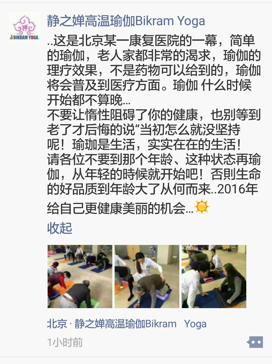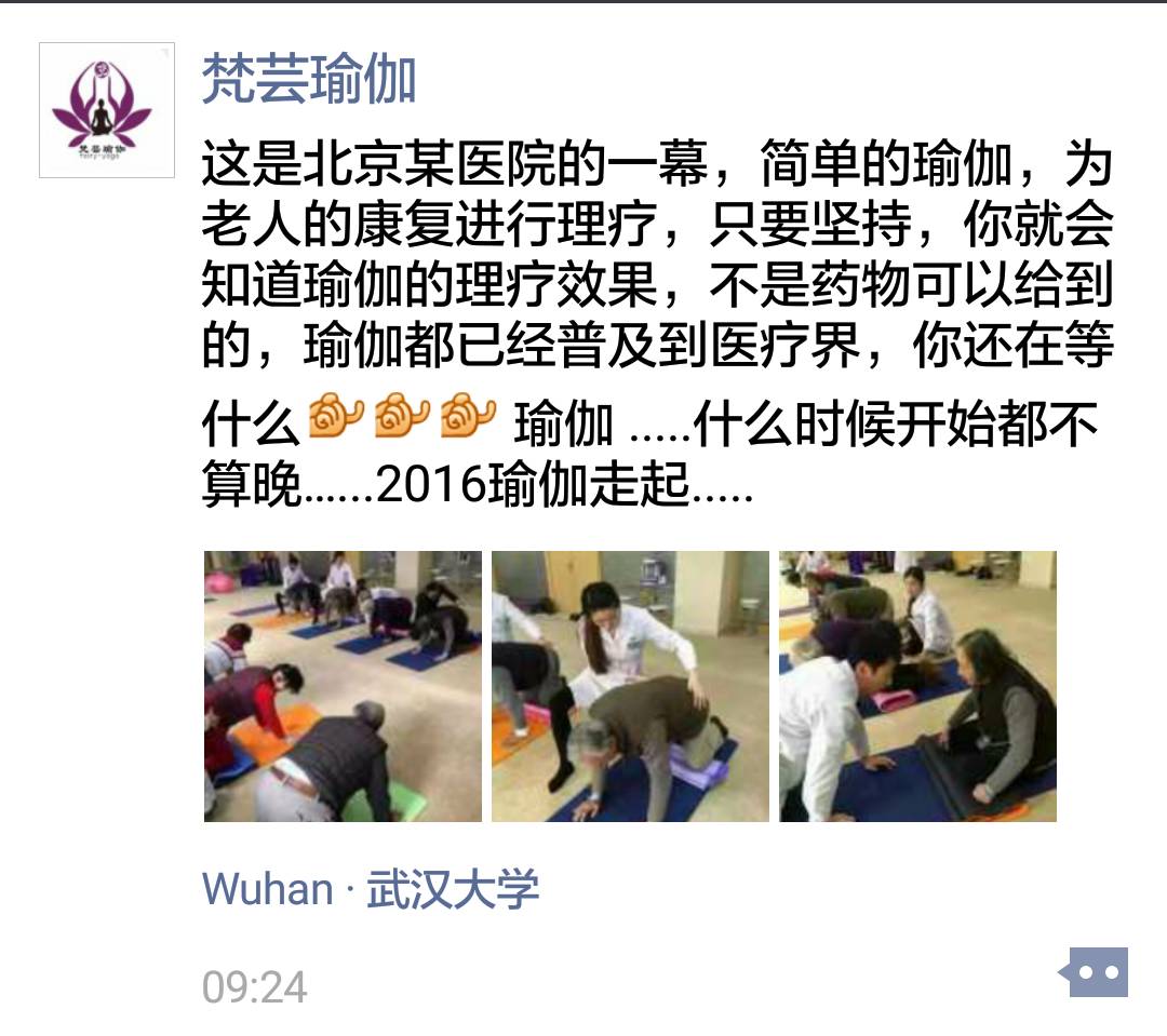 瑜伽是非常好的一种自然疗法,在身体和心灵修复方面,有很多独到之处,最近几天,圈内疯传瑜伽走进北京协和康复医院,鼓舞了很多瑜伽人,得到了很多瑜伽圈内人士的热烈追捧,大家纷纷击掌相庆,拍手叫好!