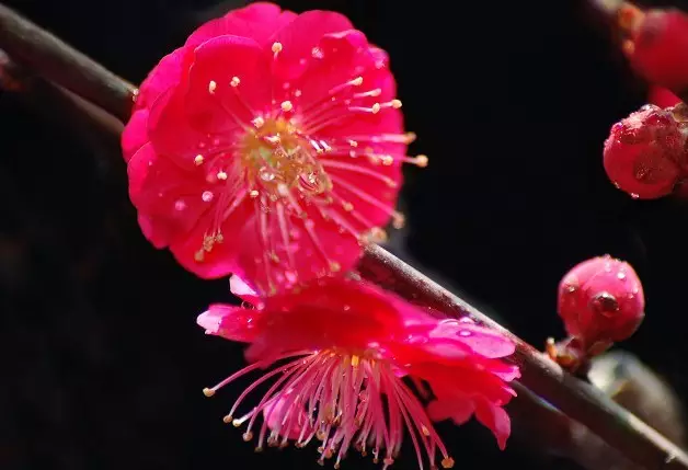 种植宫粉梅,深深浅浅的红色,如红颜淡妆,似少女婀娜,是摄影爱好者极爱拍摄的花型。