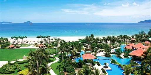 米的私人海滩。迷人的自然风景和质朴的风土人情衬托出其自然、时尚的独特风格。酒店所有客房均设有特大观景阳台,将洁白细软的海滩、景色怡人的园林、优美的山光水色、高尔夫球场景致一览无遗;不出国门尽享免税乐趣,于全球最大免税店——三亚海棠湾免税购物中心尽情