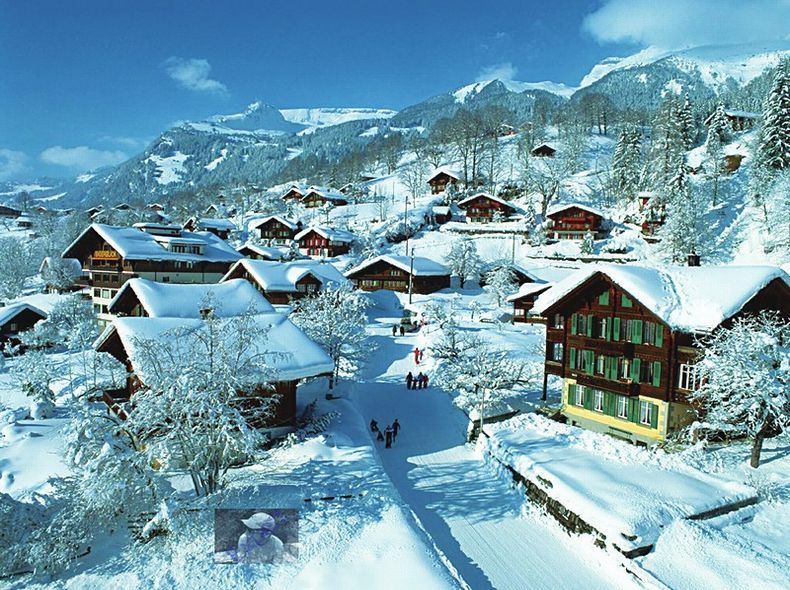 这里的风景恬静秀美,依山傍水,林木环绕,红色的小木屋依畔着河边排列,倒影映在清澈的河面上……
