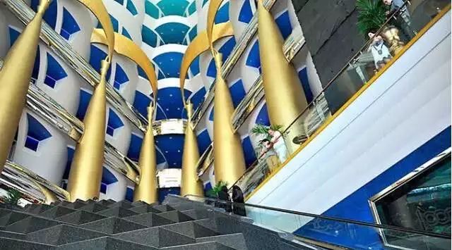 奢华,就是帆船酒店的代名词。到处都是土豪金!黄金总面积超过8000平米!