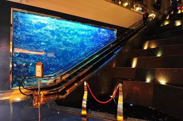 搭着电梯还可以欣赏高达十几米的水族箱,很难相信外头就是炎热高温的阿拉伯沙漠。