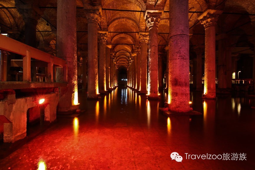 拜占庭皇帝查士丁尼兴建,最早用来为当时旁边的皇宫和建筑物储水的╮(╯▽╰)╭。后来水宫关闭,直至16世纪穆罕默德征服君士坦丁堡后被重新发现。