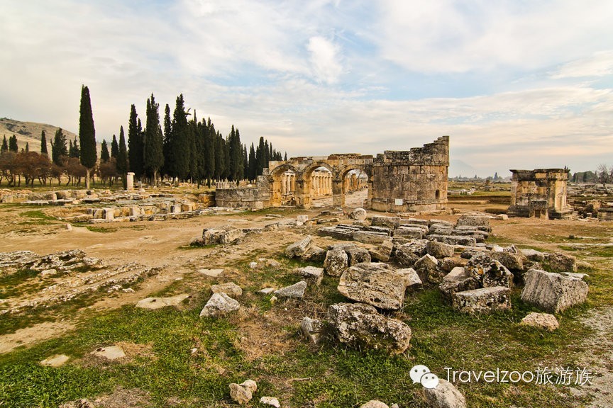 而棉花堡后面就是古城希拉波里斯,从古罗马时代就吸引着众多的人们来此进行水疗!这是座医疗城市哦,遗留下了代表生的温暖的温泉中心和温泉池,以及代表死的无畏的古老棺柩。