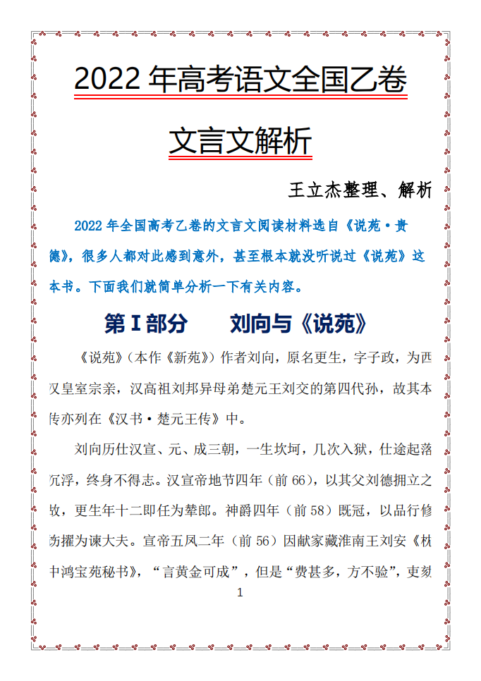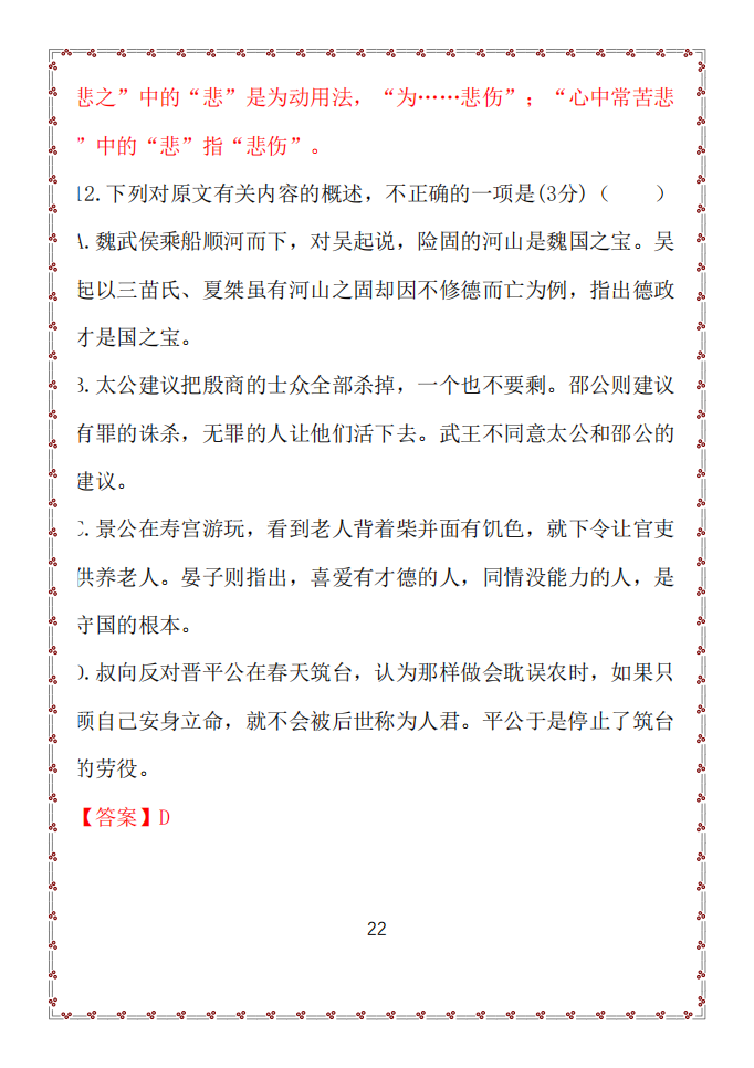 2022年全国新高考卷的文言文阅读