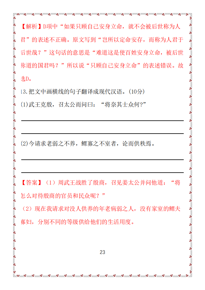 13.把文中画横线的句子翻译成现代汉语。(8分)