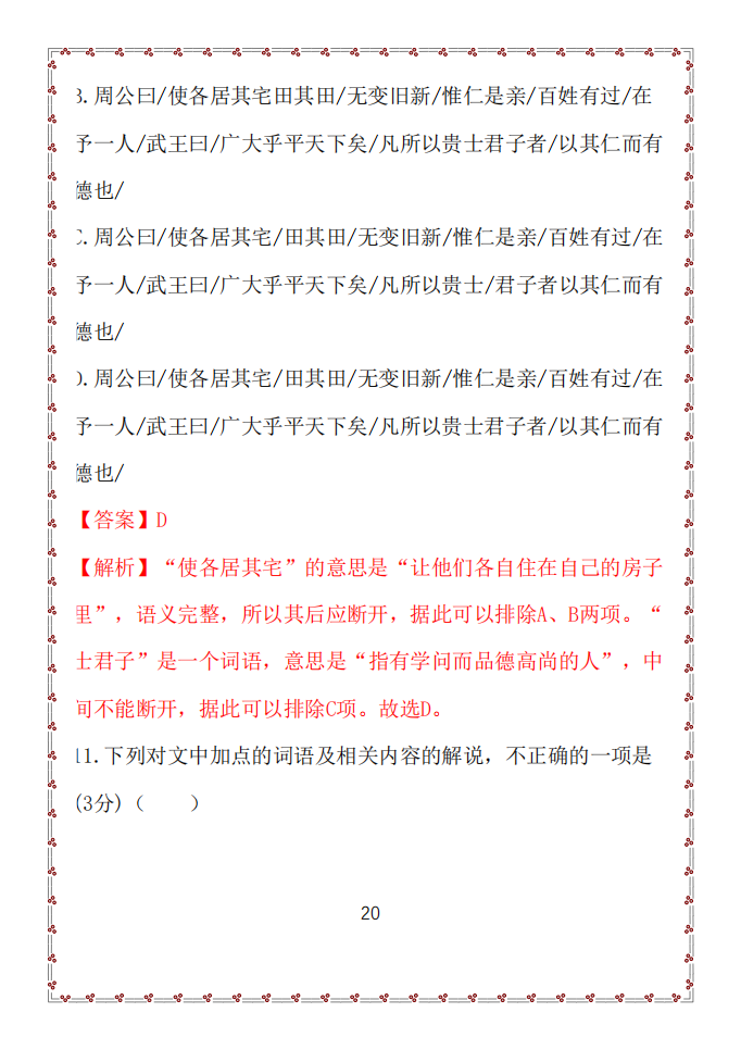 11.下列对文中加点的词语及相关内容的解说,不正确的一项是(3分)( )