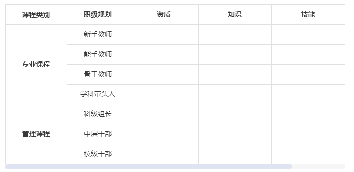 随着职级的上升,能力要求也必须往上提升。可惜的是,目前在学校的教师培训学习中,很少有这么精准的人才画像,更多的是凭经验摸索。