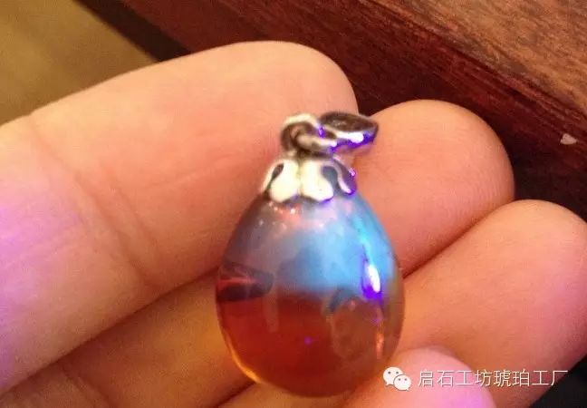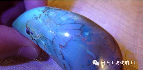 2,天然琥珀荧光反应都比较强,如海珀的淡绿色荧光、矿珀的蓝色荧光等。