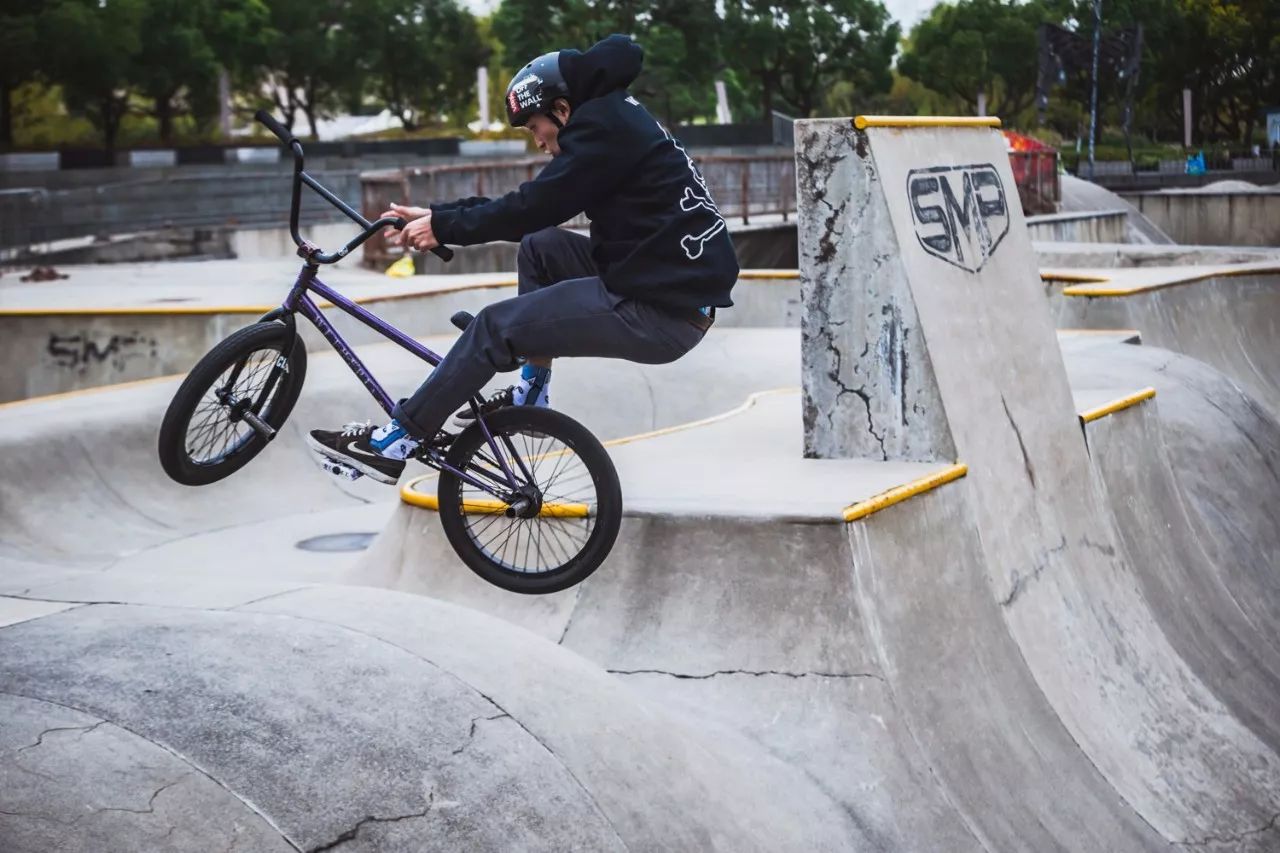 然而小强还是被BMX花哨的动作所吸引,慢慢变得欲罢不能。小轮车没有刹车,后轮依然是活飞构造,从花哨的姿势来看,它更像一个能够在场地里给予车手速度和激情的工具。骑车人要做的是把车甩起来,然后回到车上,至于飞起来之后能做的事情,全靠身体记忆来完成了。