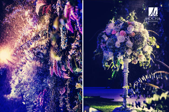 主舞台的灵感源于欧式花园。主要以植物造景为主,充分利用植物的多样性创造出令人心旷神怡的环境。巨屏的LED摇身变成装饰亮点,全场盛开的玫瑰芳香四溢,仿佛浪漫的气息拂过每个人的心头。