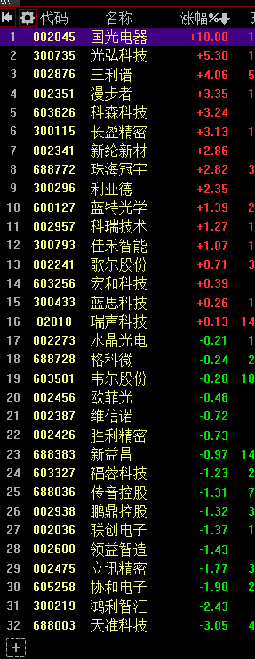 电子+元宇宙今天有初步切换异动的,科技(元宇宙硬件),本身逻辑也是有的,pico4、苹果mr预期。同时,消费电子上一波对于半导体是补涨,但一日游之后,不少票是有持续性的,小票的国光电气、三利谱,大票的歌尔股份都是较强的。重点观察反馈:国光电器,大丰股份,木林森,三利谱,歌尔股份。