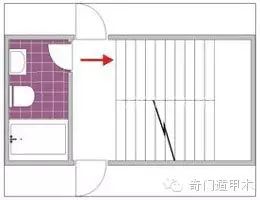 厕所的门正对着上下的楼梯,楼梯是气场流动所在,气直冲厕所内,引起厕所气场不稳,会使秽气流出,以致流至阳宅各处,会影响家人之健康和运势。
