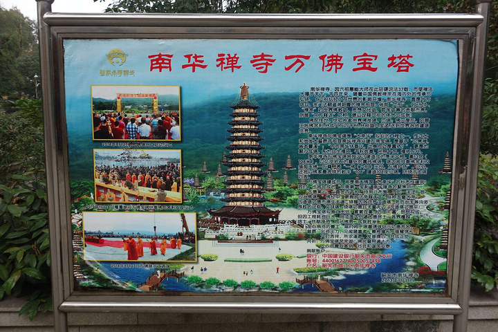 南华寺坐落于广东省韶关市曲江区马坝镇东南7公里的曹溪之畔,始建于南北朝梁武帝天监元年(公元502年)。天监三年,寺庙建成,梁武帝赐“宝林寺”名。后又先后更名为“中兴寺”、“法泉寺”、至宋开宝元年(公元968年),宋太祖敕赐“南华禅寺”,寺名乃沿袭至今。因禅宗六祖在此弘法,也称六祖道场。南华寺建筑面积一万二千多平方米,由曹溪门、放生池、宝林门、天王殿、大雄宝殿、藏经阁、灵照塔、六祖殿等建筑群组成。建筑除灵照塔、六祖殿外,都是1934年后虚云和尚募化重修的。