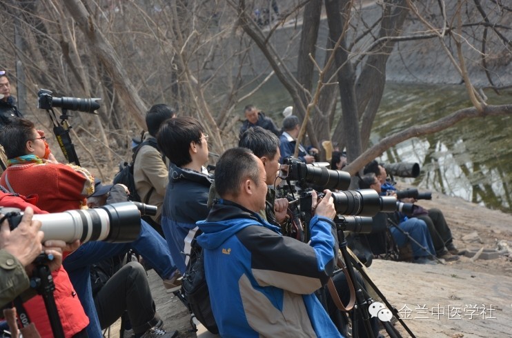 (图为众摄影家们专注于拍摄那只鸟儿)