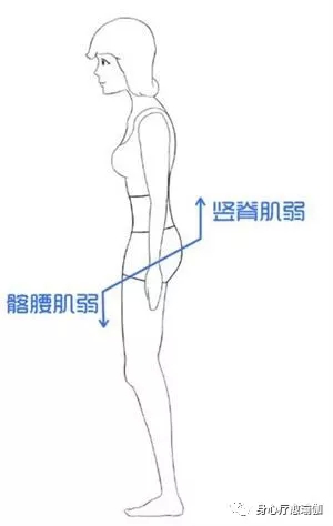 骨盆后倾典型姿势:驼背、臀下垂
