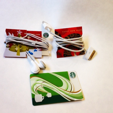 耳机和电源线可以缠在没用的卡片上。