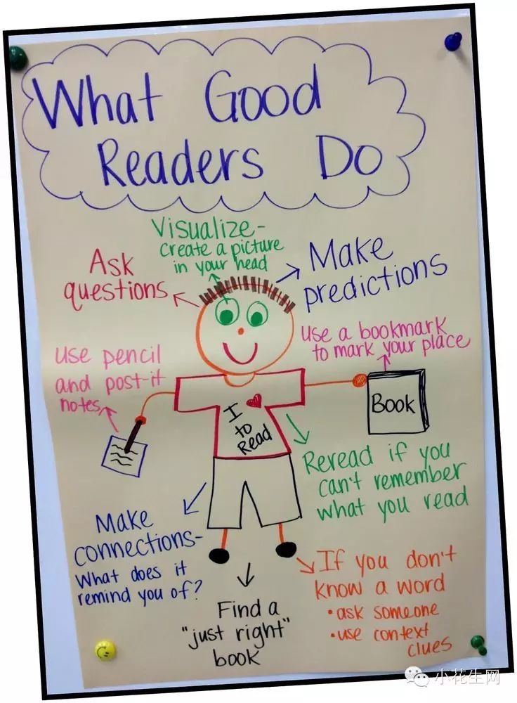 下面这张Anchor Chart,告诉孩子怎样做一个有效的阅读者?找对书、头脑中有图景、使用书签、会做笔记、复读重要的内容、会问问题、会思考相关问题 ...