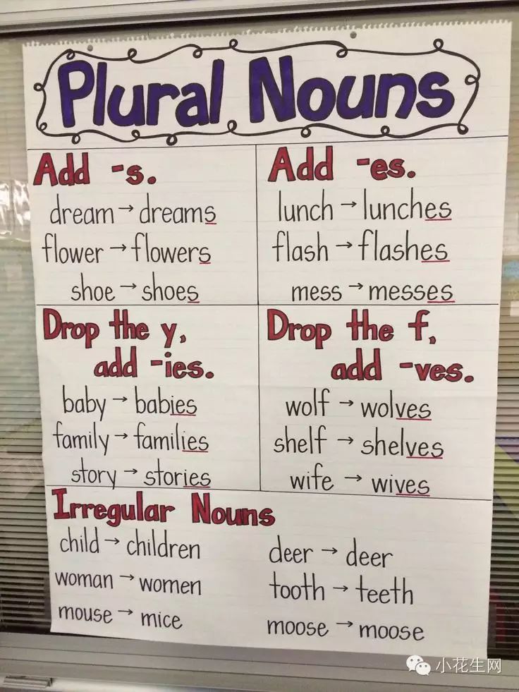 Anchor Chart还是很好的学习工具、记忆工具。比如,这张学英文名词复数表达方式,这样的要点图一下子把听起来很乱很难记的概念表达得一清二楚。