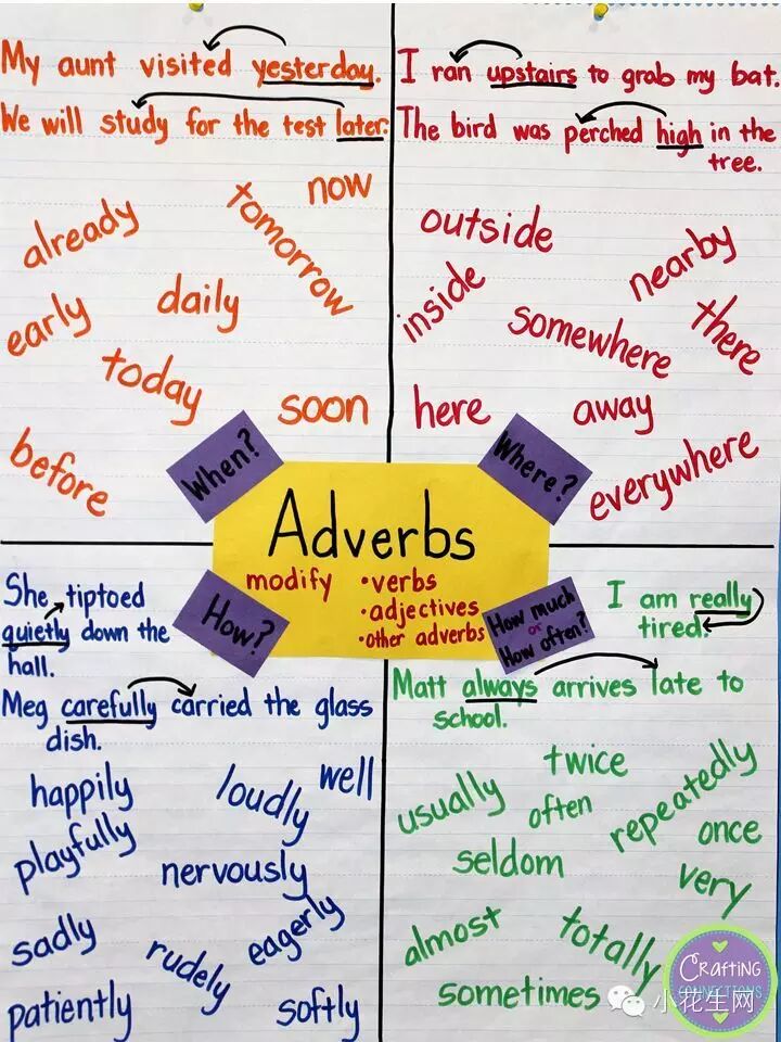 如果用下面这样的要点图帮孩子分析和学习副词,是不是孩子更容易理解和记忆?