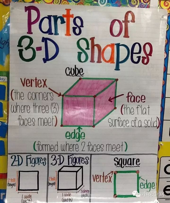 再比如,和孩子解释立体形状牵涉到的很多名词和概念,很费口舌,如果只看文字,累死,而这一张图就说清楚了。