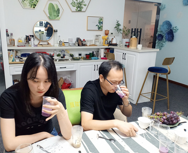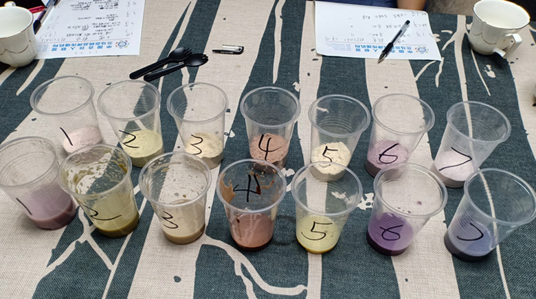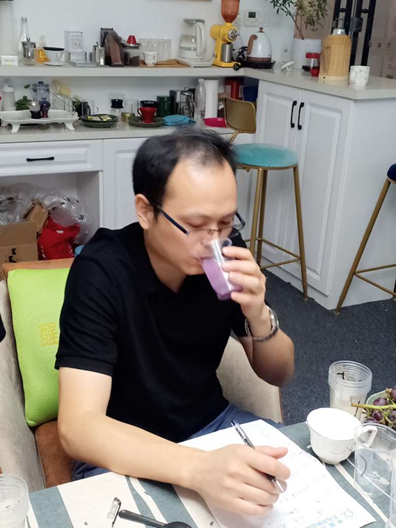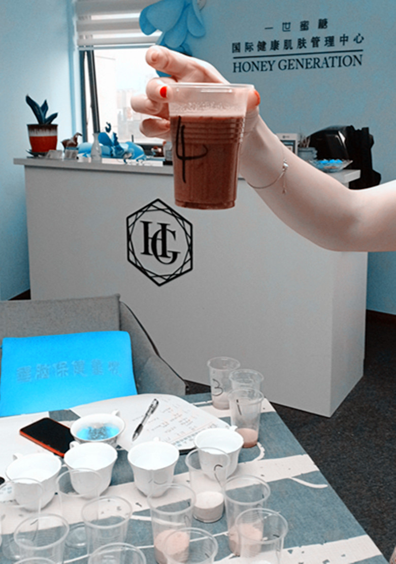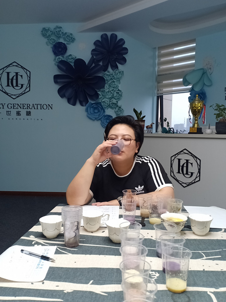 在第三个“体脂日”里,一世蜜糖美丽&健康产业集团特意举办了“减肥类代餐膳食”的“盲品”活动。在“盲品”的膳食食品上,以固体饮料为主,一共选择了5款市面上销售的商品,以及2款经中日(大陆、台湾)减肥营养专家与营养食品博士联合研发成功的“融营养固体饮料膳食”。采取盲品红酒的方式,对以上7款减肥类代餐食品进行编号、盲品、打分、综合评价,经6位盲品师品鉴后,从颜色、口感、肠胃舒适度、营养、饱腹度、食欲感等6个纬度进行评分,其冠军、亚军、季军分别由编号6、编号1、编号4荣膺,第4、5、6、7名,分别是编号7、编号3、编号5、编号2。