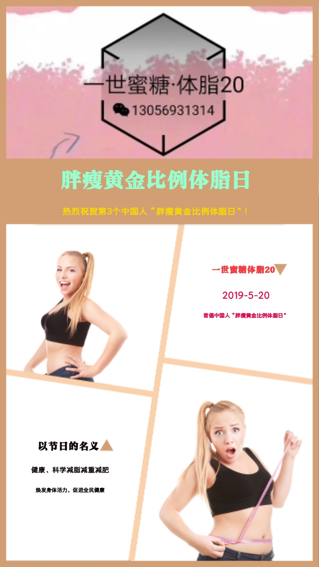 (一世蜜糖美丽&健康产业集团总经理娟子与她团队联合来自大陆、台湾、日本、新西兰、美国、瑞士等近十名营养专家、食品博士、生物博士、医学博士,在今年5月20日全球首次倡议在我国建立“胖瘦黄金比例体脂日”——每月20日为“体脂日”,科学倡导全民减脂,每一个中国人都拥有正常的体脂率,即体脂率在20%左右,从而身体健康,身材美丽。)