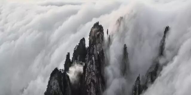 点评:云海中,峰如出鞘利剑,穿云破雾,画面壮观,宽幅构图更显雄壮。如作者能更好地把握和处理中心部位的一点光线,照片将更为出彩。