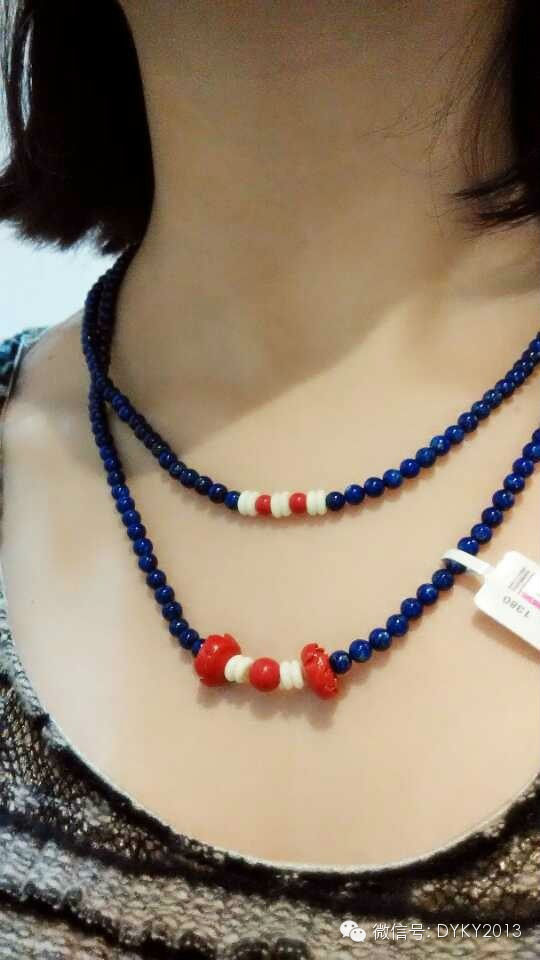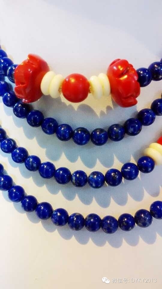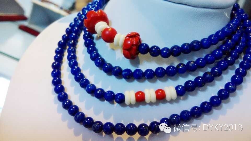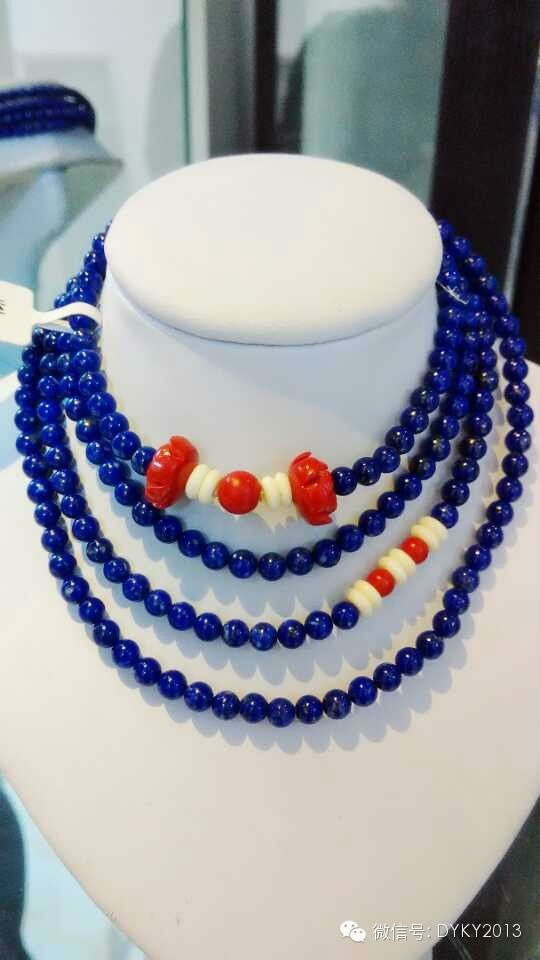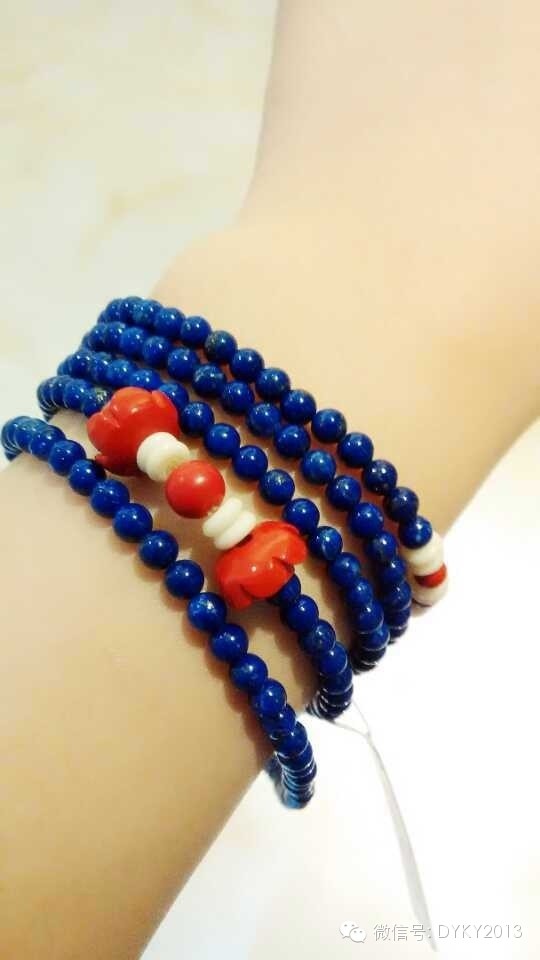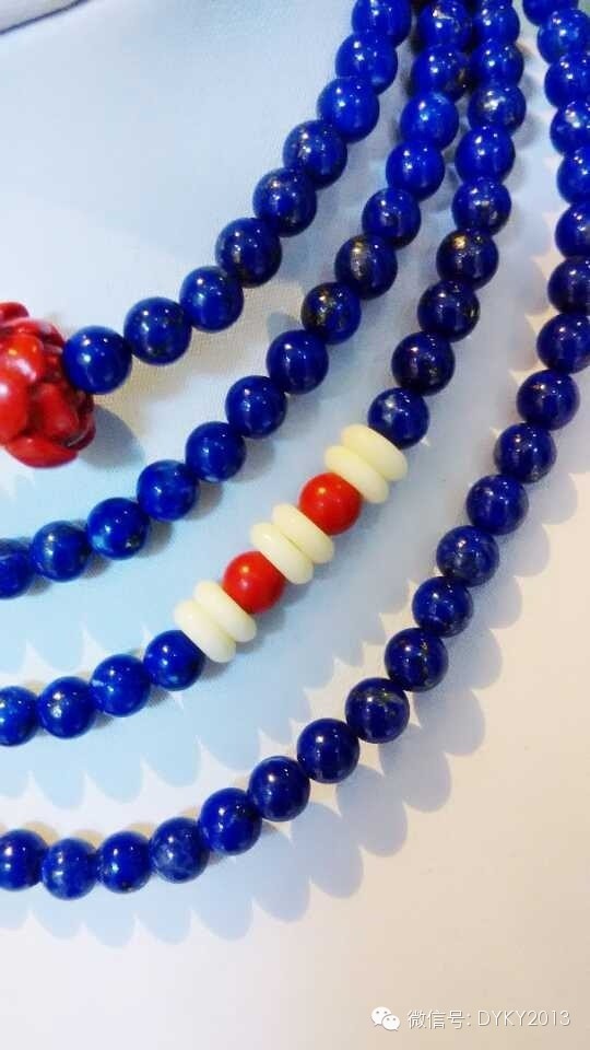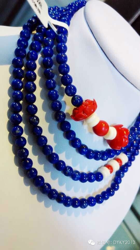 图解:极品青金石荷花朱砂216颗佛珠项链手链,精美设计,静待有缘