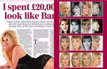 “世界第一人造美女”辛迪-杰克逊18年内多次整形后,年轻了35岁,三十年来,经过多次大小型的整容手术,辛迪·杰克逊终于成为芭比娃娃的现实版代言人!