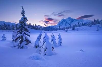 暴风雪后的黎明,日出时的贝克山。