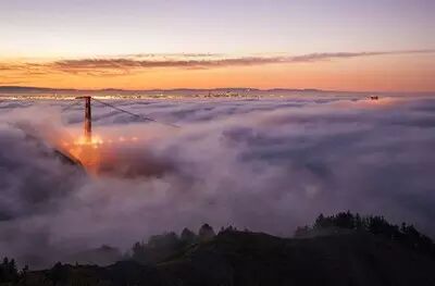 日出前被雾霭笼罩的金门大桥。