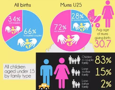 以下图表概述了澳大利亚所有出生人数目前的生育趋势、25岁以下妈妈们的生育情况和澳大利亚家庭组成情况。